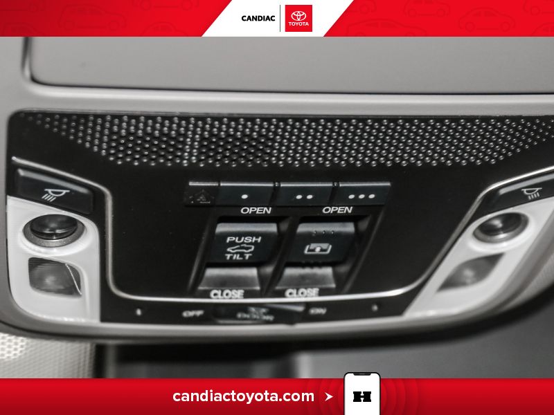 Commandes de la télécommande -comprend : commande d'accès à l'espace utilitaire sur la télécommande, commande des glaces sur la télécommande, commande du toit ouvrant sur la télécommande et démarreur à distance